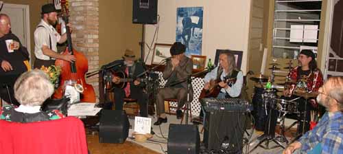 Jim Beelby (Upright Bass), Rene Demers (Vocals & Guitar), Jim Breslin (Harmonica & Violin),Mogens Galberg (Vocals & Guitar), and Rick Roy (Percussion & Hoola girl)